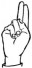 На ћирилици написано МОМЧИЛО УЛЕМЕК састоји се из 13 слова [?]. Исписано ћириличном једноручном азбуком за глувонеме: